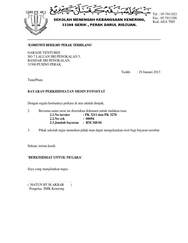 Surat Iringan Bayran Melalui Cek Pdf