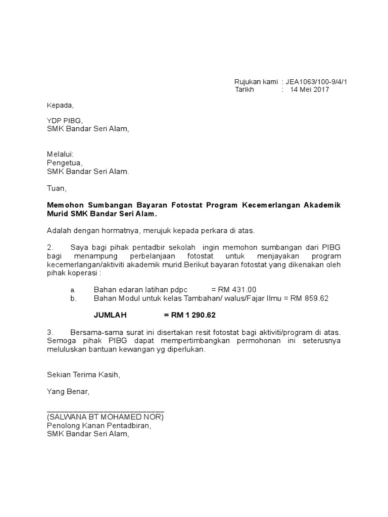 Surat Mohon Sumbangan Pibg Pdf